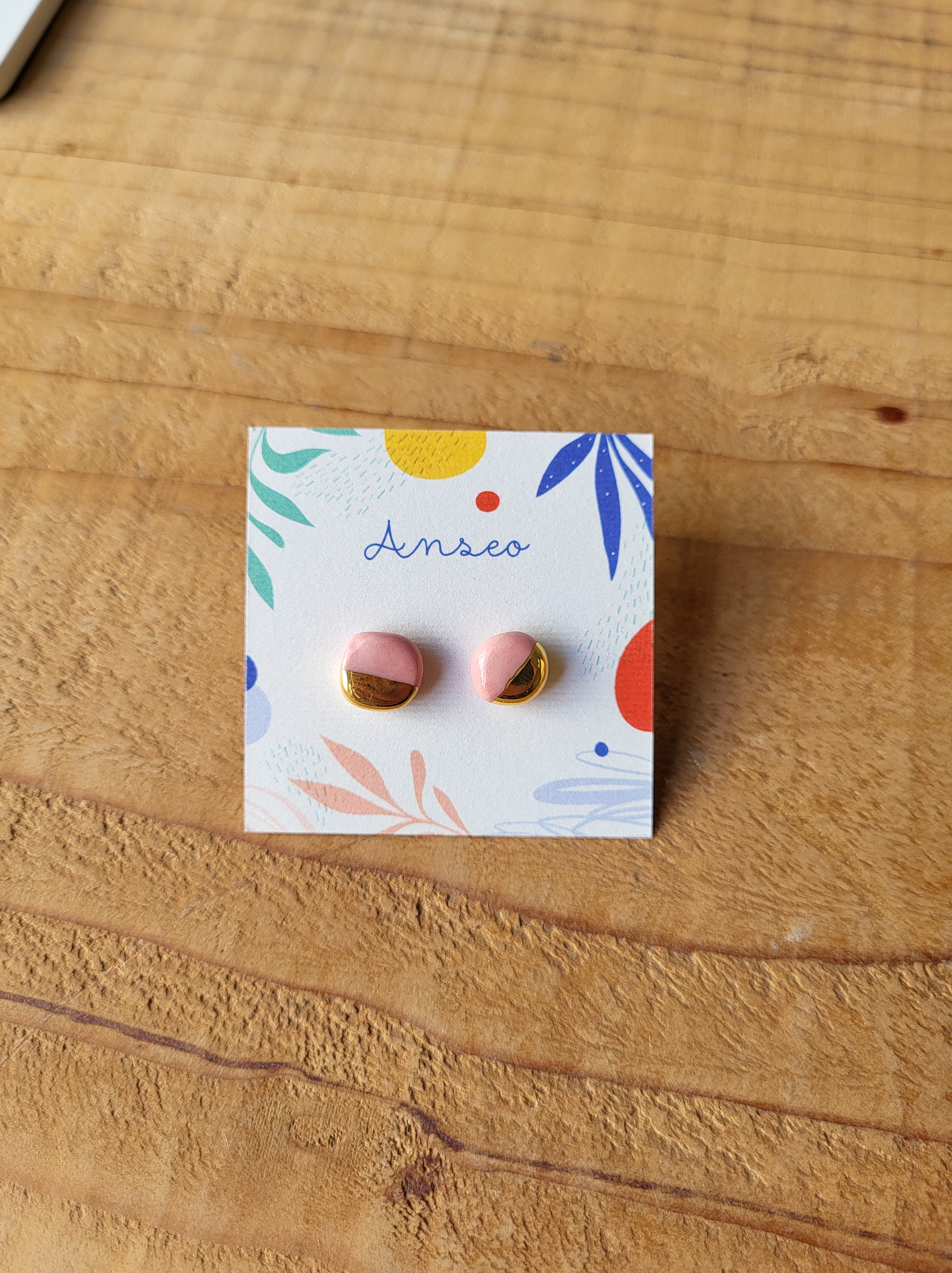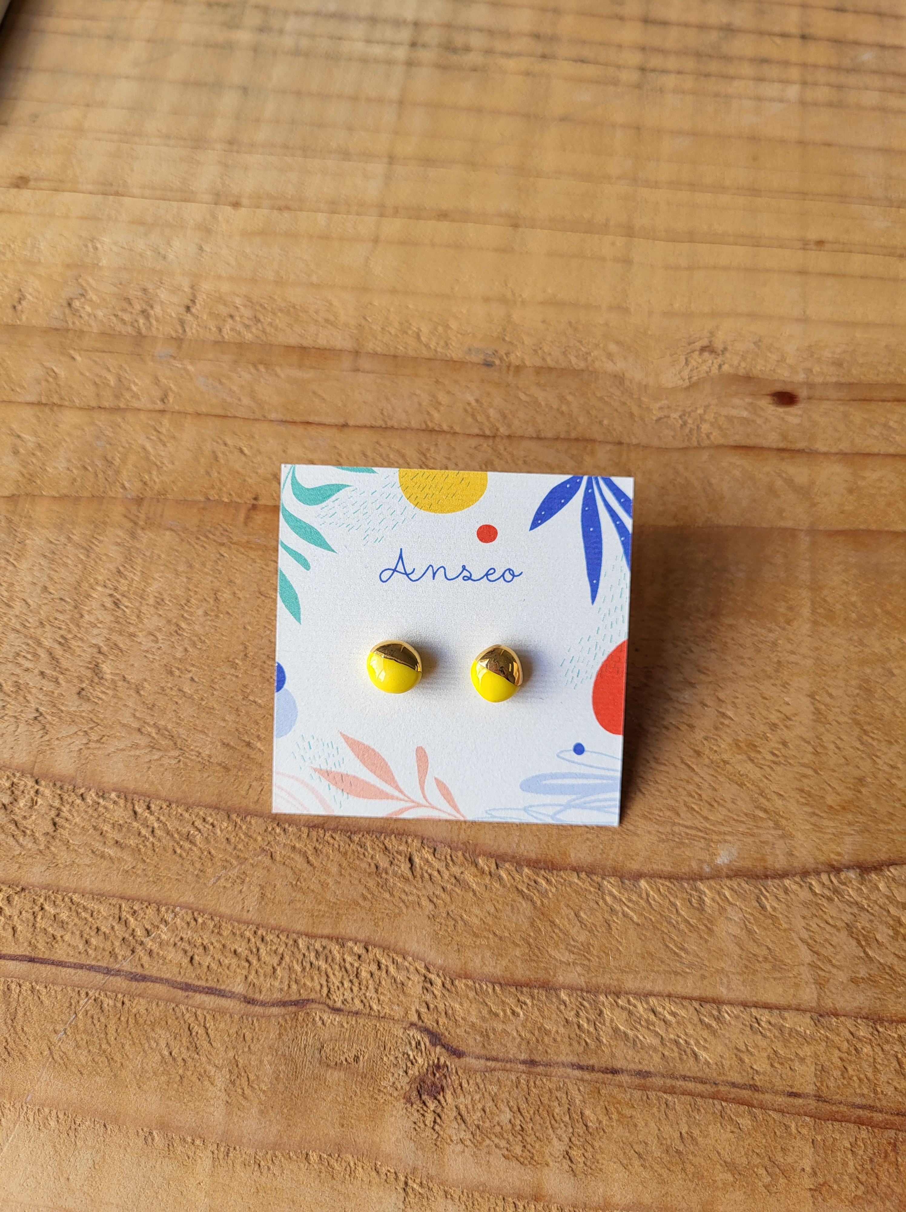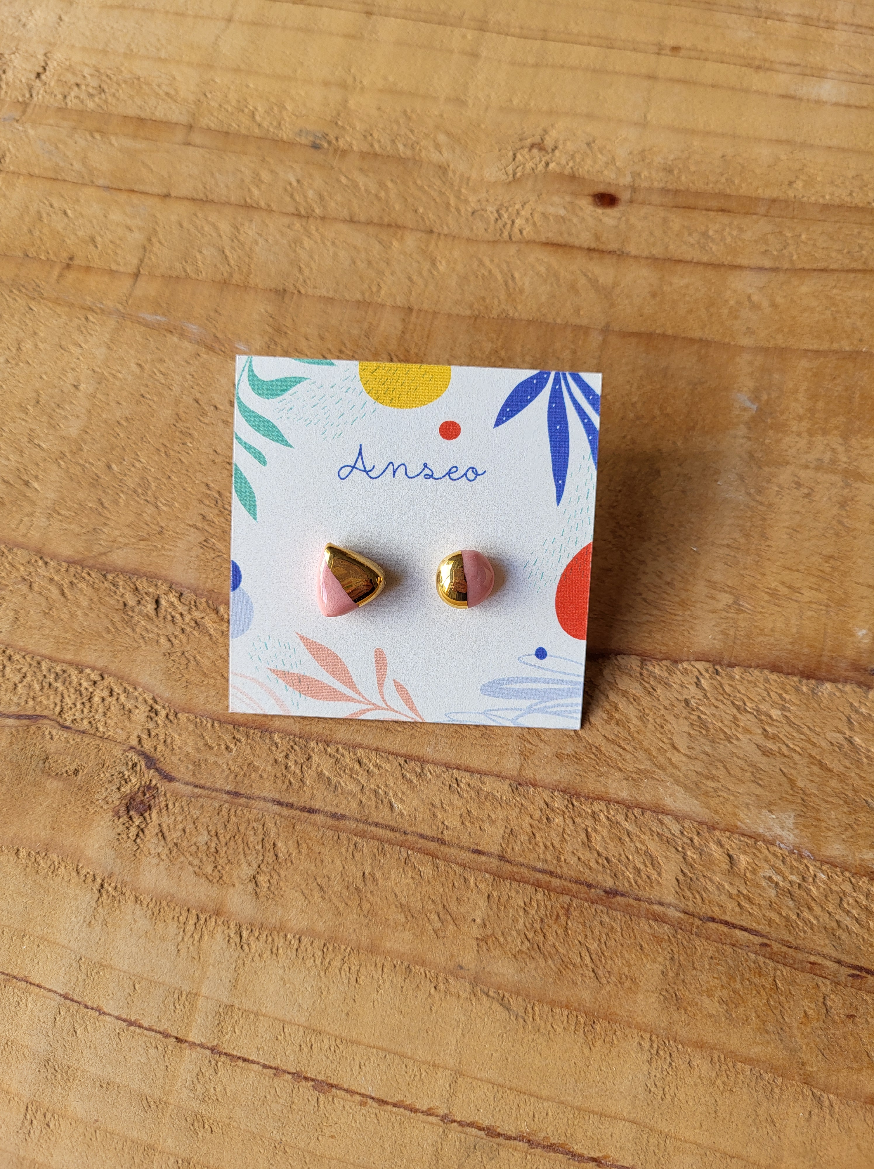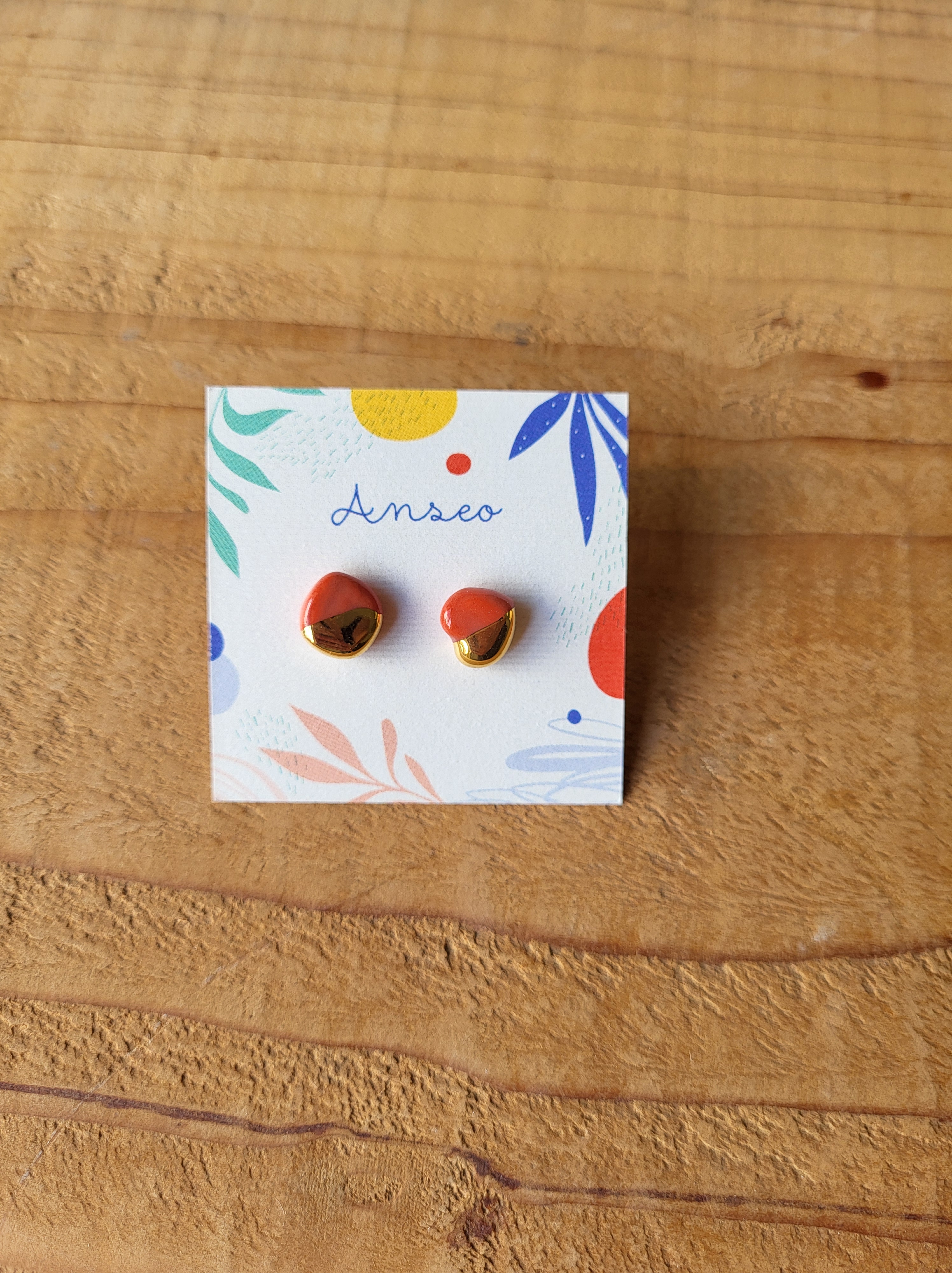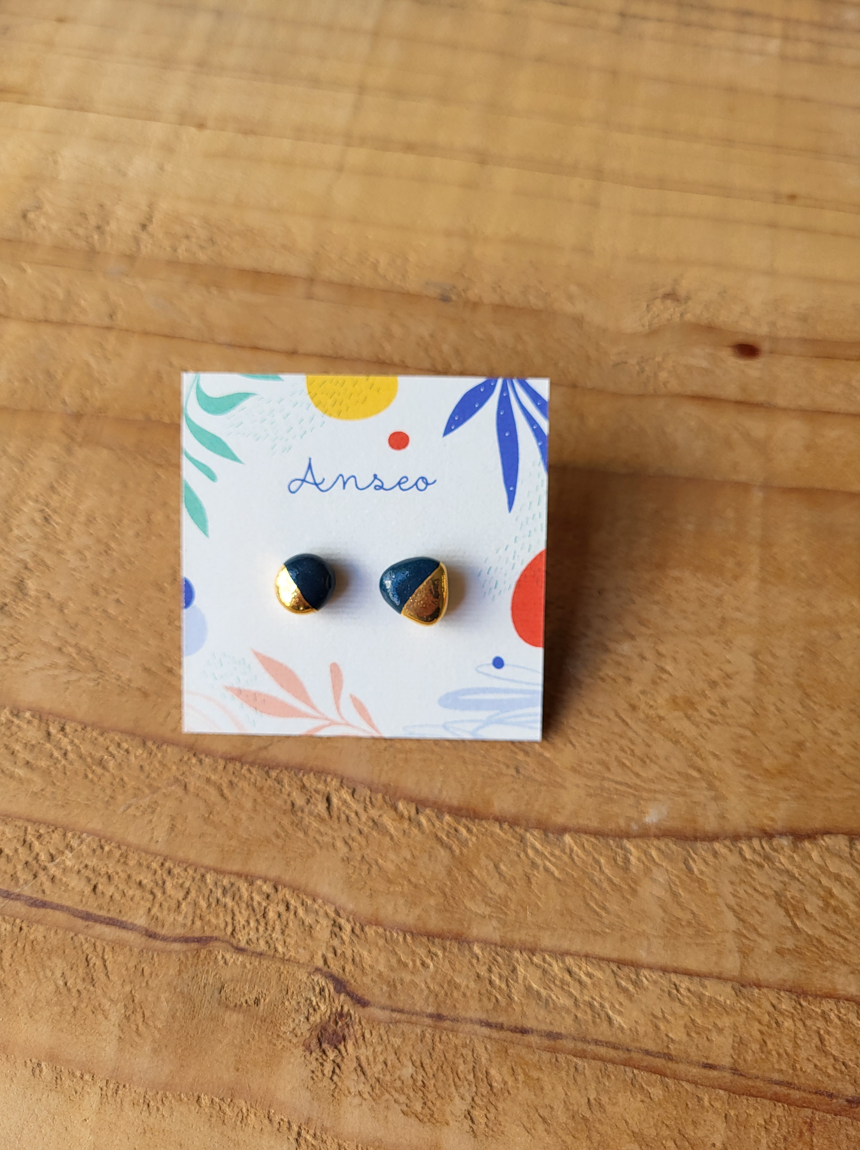 Orecchini artigianali in porcellana e lustro oro ispirati ai colori delle pietre preziose.